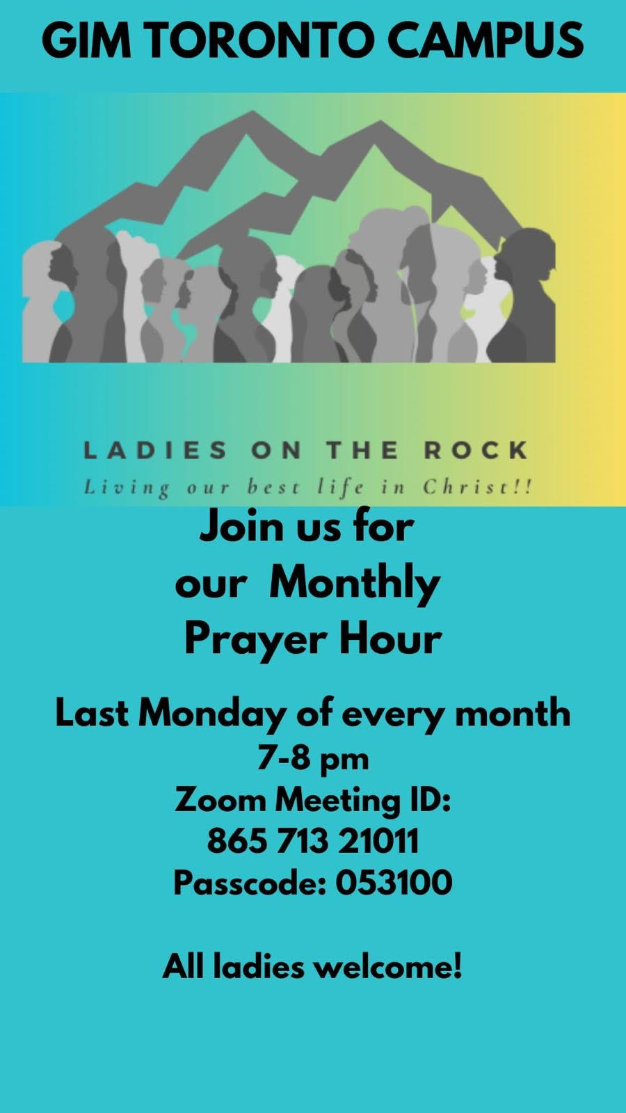Happy Family Day ladies! I am delighted to announce that there will be a themed prayer hour every last Monday of the month. The first one will be next Monday, the 24th of February from 7 - 8 pm EST. There will be Bible readings, prayers, and reflection. Please find the Zoom meeting details below:
